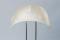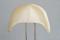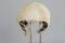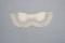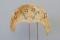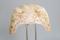 | Bindmössa av randigt benfärgat siden med broderier. | |