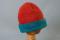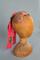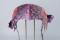 | Bindmössa av lila, blommigt sidenaktigt tyg. | |