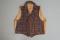 | Damtröja av tegelröd kattun med svart mönster. | |