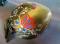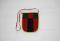 | Kjolsäck, röd med gula kanter med lock, knäppt med en knapp. Från Sideby. | |