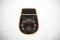 | Kjolsäck, svart med gula kanter, dubbelficka, med lock, fästes med vävt band. Från Solv. | |