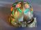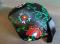 | Styckemössa, mörkgrön, broderier i grönt, rött, rosa, gult, brunt och svart. Från Jeppo. | |