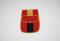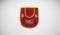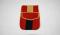 | Kjolsäck, röd med gula kanter med lock, knäppt med en knapp och med gula band runt livet. Från Sideby. | |