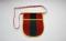 | Vävt band med grönt botten, röda inslag, svarta kanter. Avklippta ändar med tofsar. Från Sund. | |
