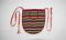 | Kjolsäck, enkelficka, sydd i svart, rött och grönt med gula kanter, vävda band. Från Replot. | |
