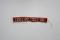| Vävt, kort band på vit botten med rött, grönt och vitt mönster. Från Snappertuna. | |