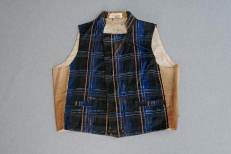 Väst av storrutigt sidentyg i svart, blått, ljusrött och vitt, 3,5 cm hög