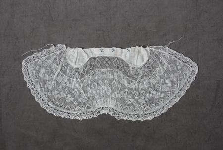 Stycke beståendes av flera olika spetsar: Två 1800-talsspetar i Raumostil, en bredare spets vid namn Frimodiglai och kantspetsen vid namn Sandroskalai.