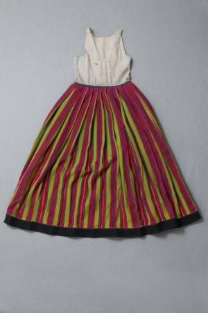 Livkjol, liv av vitt bomullstyg kjolen i halvylle i granna färger.