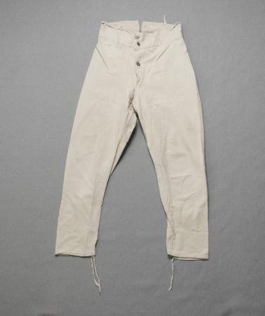 Finska arméns bomullskalsonger. Märkt "INT/41/1". Modell från 1800-talet. B: 41 cm, H: 108 cm.