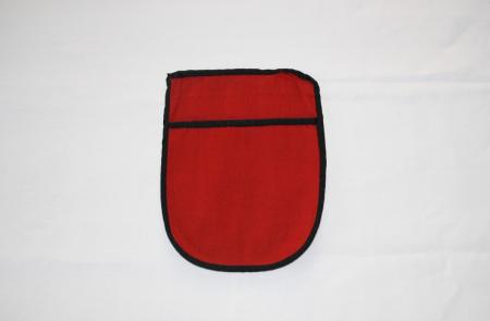 Kjolsäck röd med svarta kanter, enkel ficka. Från Korsholm.