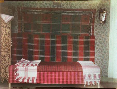 Fälltäcken, handkläde, franslakan hos Granö, Rekipeldo, Vörå.