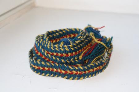 Band i blått, gönt, gult och rött. Från Maxmo.