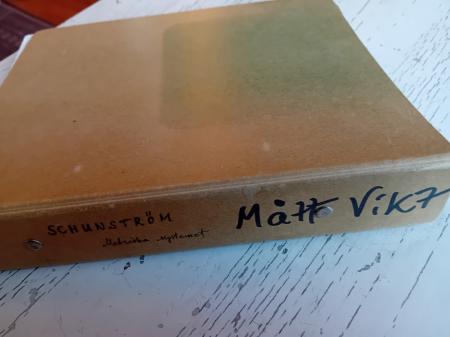 Fickbok med tabeller för förvandling av svenskt mått, mål och vikt till metriskt och omvänt.